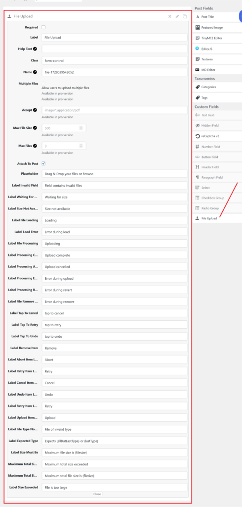 Select the field from the right side, then fill in the fields as needed. This field will save in the meta, and the meta key will be the “Name” field.