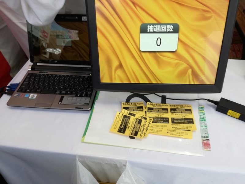 通常の行列はめちゃ混んでて、並ぶの諦めた方、3枚で1回なので余った抽選券などをたくさんいただけたおかげで8回(2万4000円分)も抽選できました。