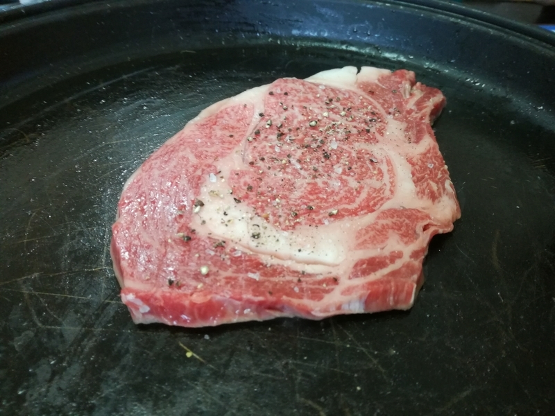 こんな霜降りステーキが税込み1枚1000円。お得だ(*´ω`*)