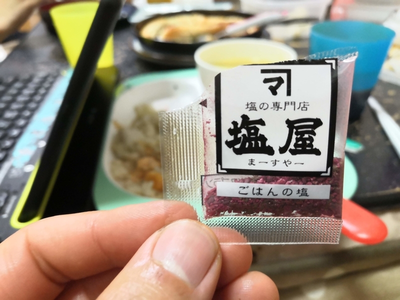 途中でまーすやーの塩で味変更も。ご飯の塩とありますが、ゆかりみたいなさっぱり感。もちろん飯は進んでしまう危険あり。