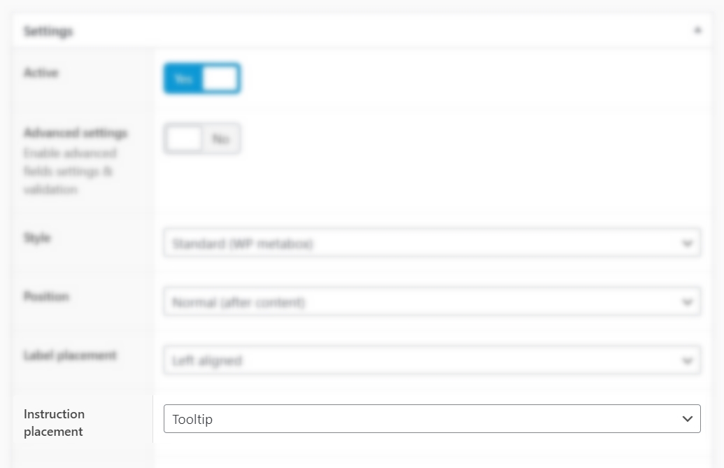 The new instruction placements let you display field description “above the fields” or in a “tooltip”. It can be selected in the “Instructions Placement” field group setting.