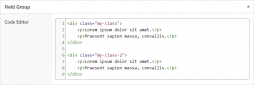 Display a code editor area using the built-in WP Core Codemirror library. Multiple languages highlights are available: Text/HTML, Javascript, CSS, PHP mixed & PHP plain.