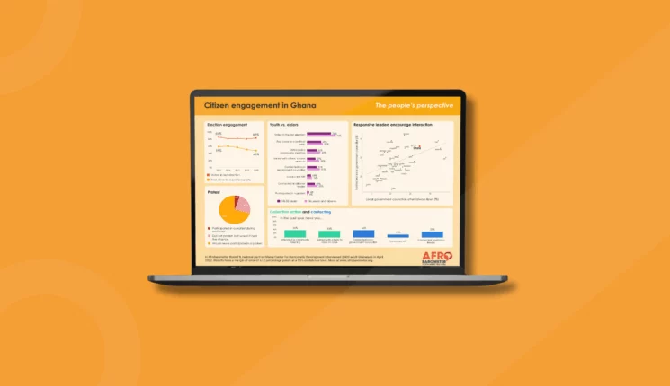 Afrobarometer country scorecards for 39 African countries present graphic illustrations of our survey findings on key indicators of citizen engagement, from voting and party affiliation to collective action, contacting, protesting, youth engagement, and the correlation between government responsiveness and citizen participation.