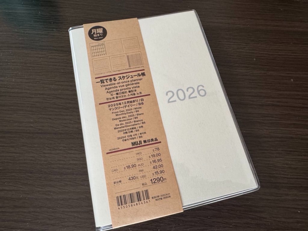 2026年は無印良品の一覧できるスケジュール帳にしてみました。