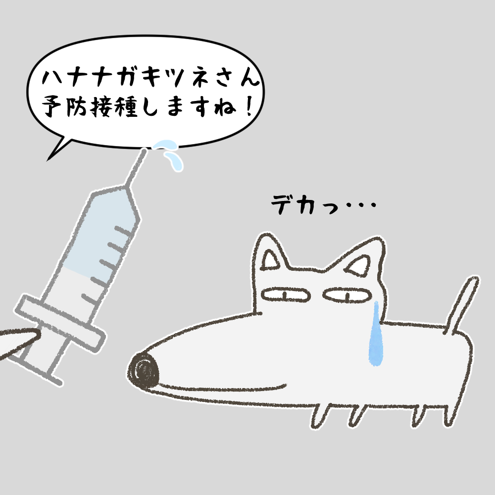 さて、今回はハナナガキツネの「予防接種」エピソードの4コマです。どうぞ。