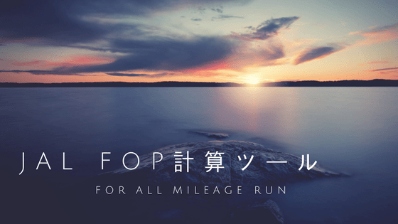 JALのFOP計算ツールです。ANAのPP計算ツールと似たような機能ですが、JAL版は一度作ってからカスタマイズをいれてないので(PP計算ツールのほうは何度かブラッシュアップしています)、若干使いにくいところもありますが、対象空港に対してのFOP一覧を表示するのでまずまず便利だと思います。