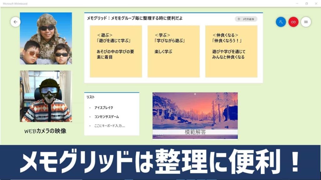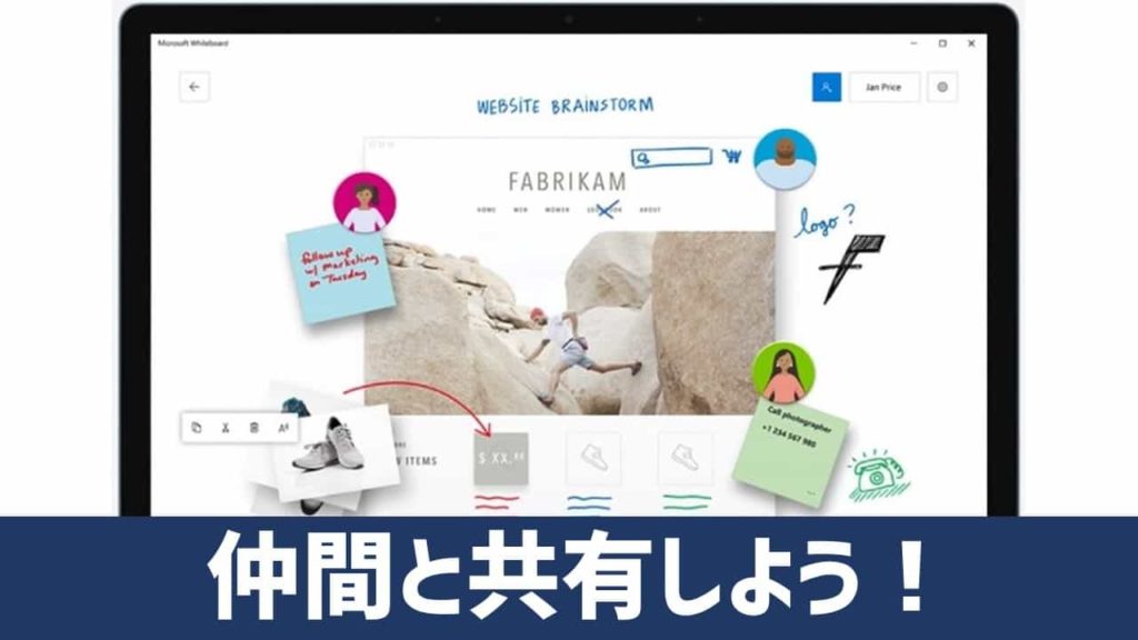 マイクロソフト・ホワイトボードは、ひとつのキャンバスを仲間と共有しながらリアルタイムで作業することができます。