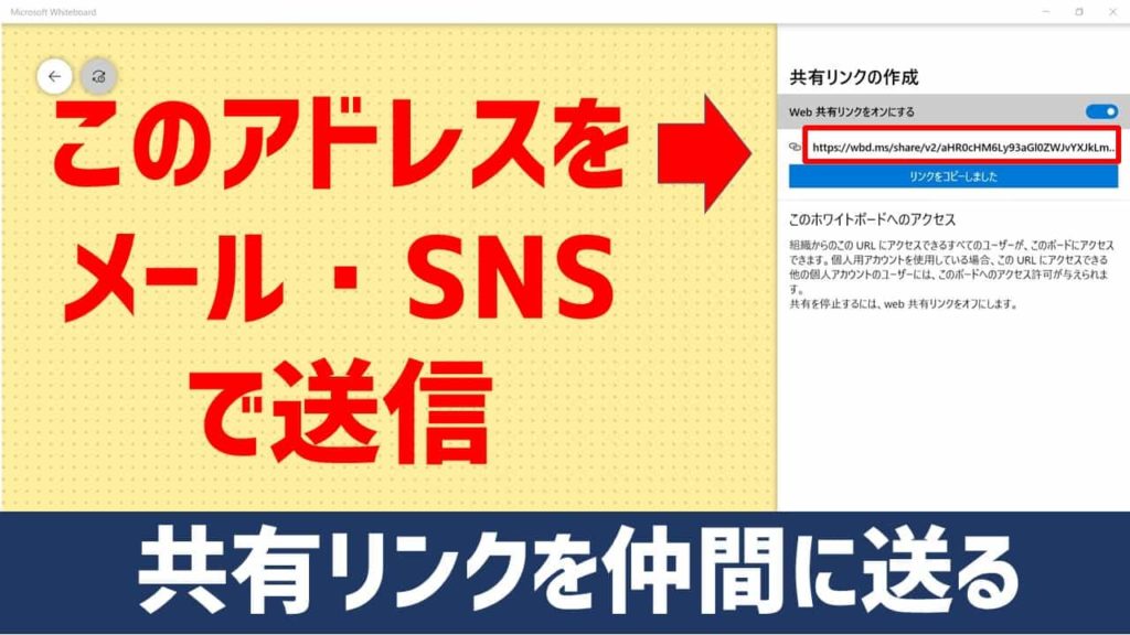 このアドレスをメールやSNS等で招待したいメンバーにおくります。