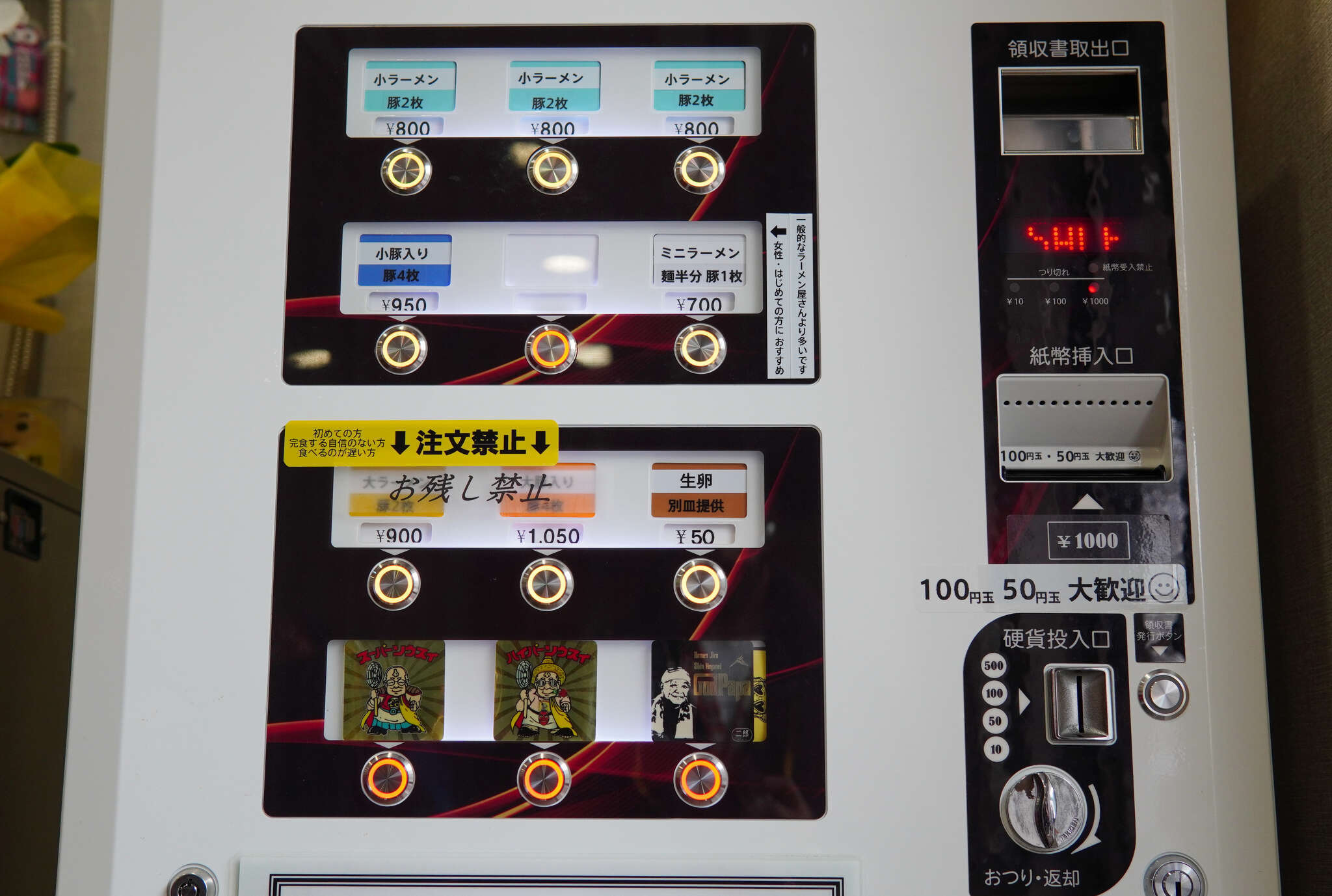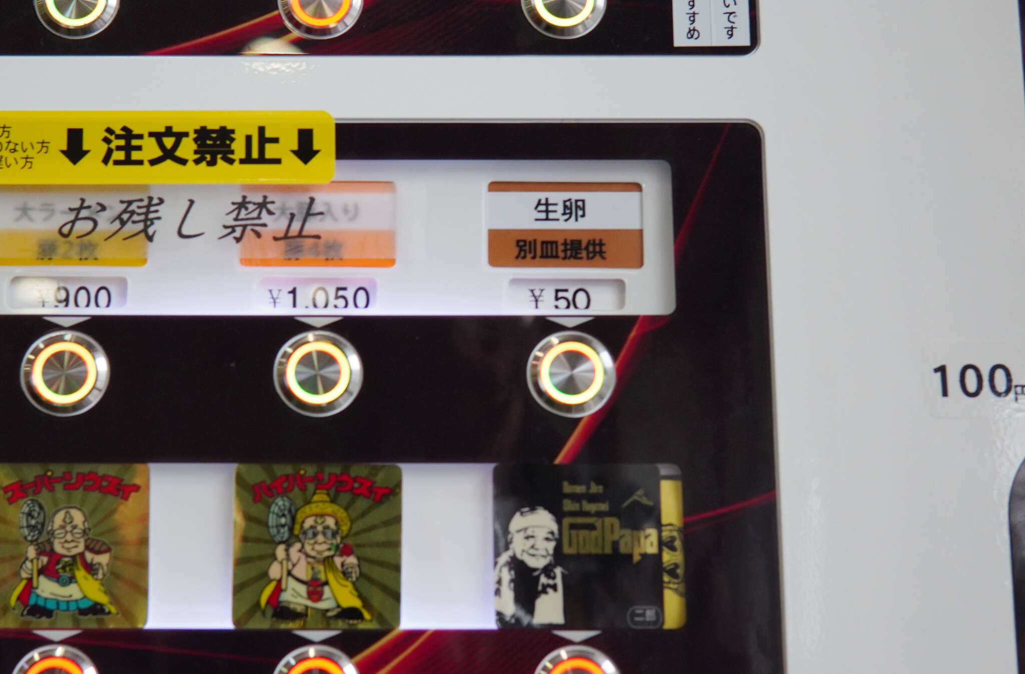 食券機にて、その1周年記念日に満を持して発売開始となった、噂の「生卵(別皿提供) 50円」の存在を確認。