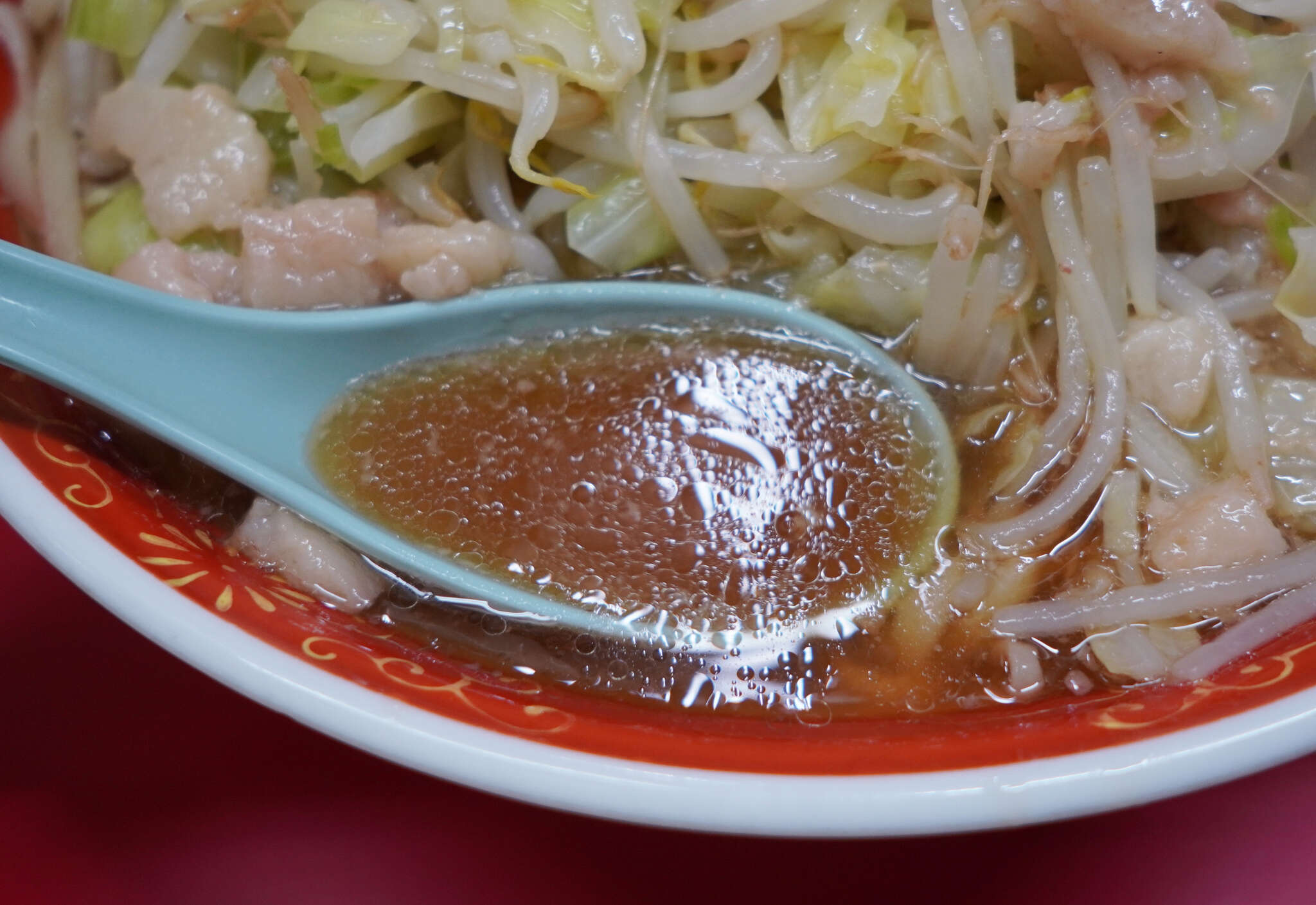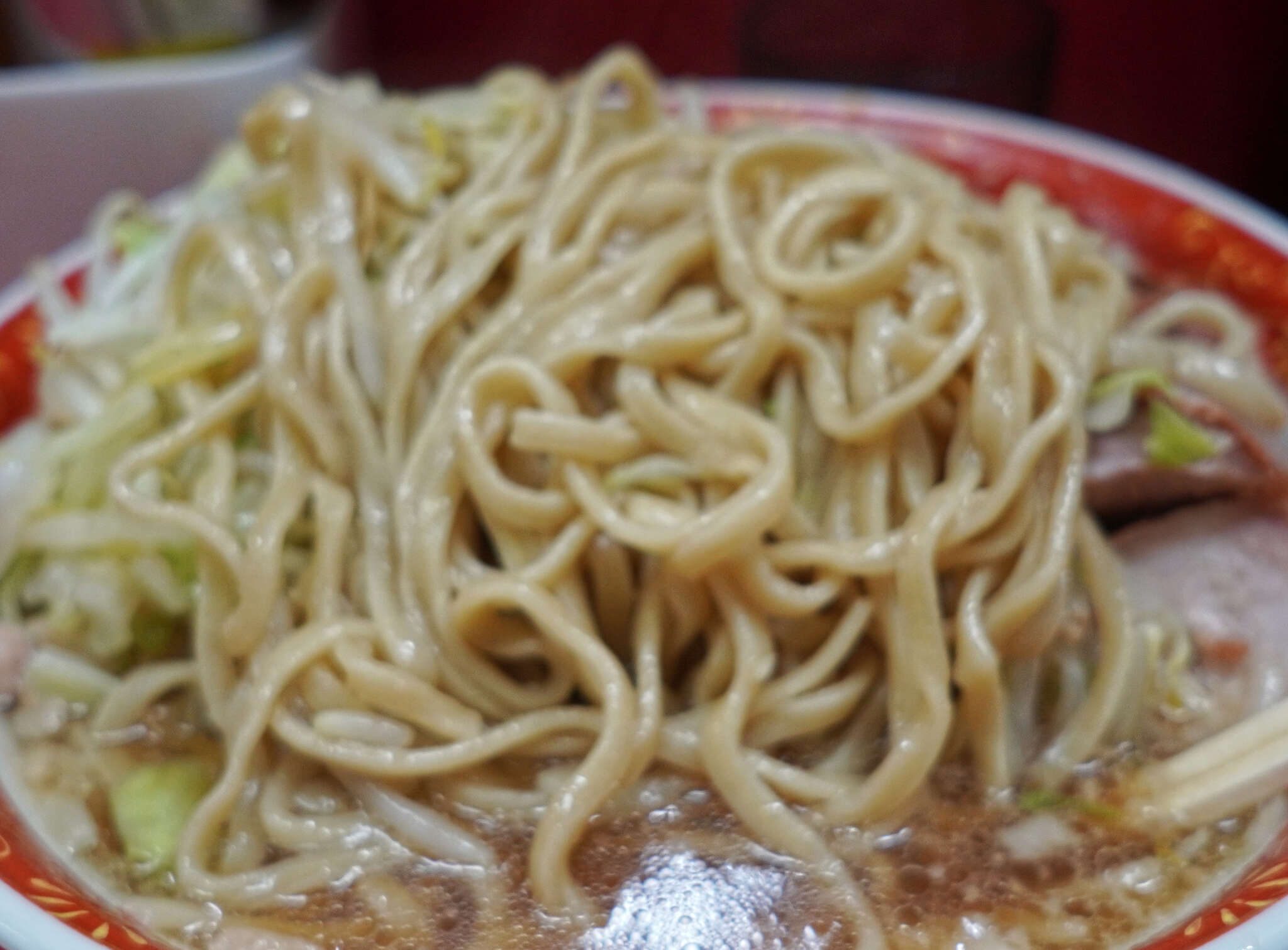 若干浮足気味だったこともあり、麺や豚の写真はピントが甘め。