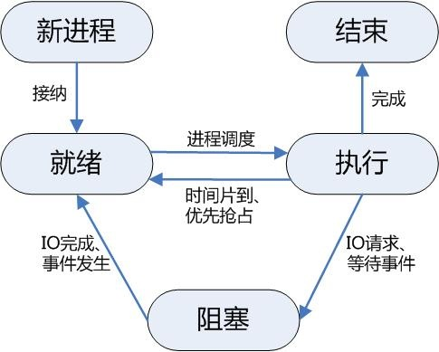进程,是并发执行的程序在执行过程中分配和管理资源的基本单位,每一个进程都有一个自己的地址空间,即进程空间或(虚空间)。进程空间的大小 只与处理机的位数有关,一个 16 位长处理机的进程空间大小为 216 ,而 32 位处理机的进程空间大小为 232 。进程至少有 5 种基本状态,它们是:初始态,执行态,等待状态,就绪状态,终止状态。