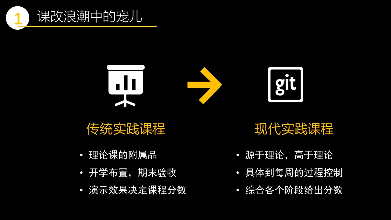 - 阶段单一,不好优化。因为传统实践作业只是一次看起来体量比较大的作业而已,如果要改革就是把课程的要求改进,但其本质还是没有改变。阶段太单一,不好优化。