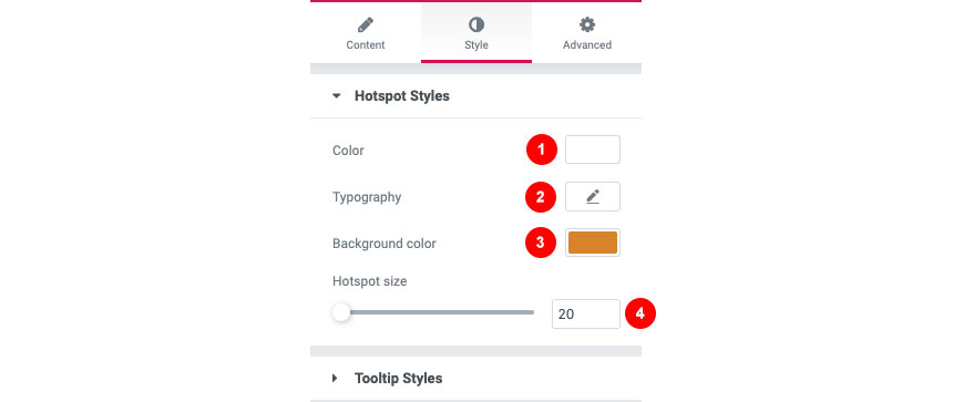 You can also under the Style tab of the module to change the basic colors of your hotspots and their tooltips