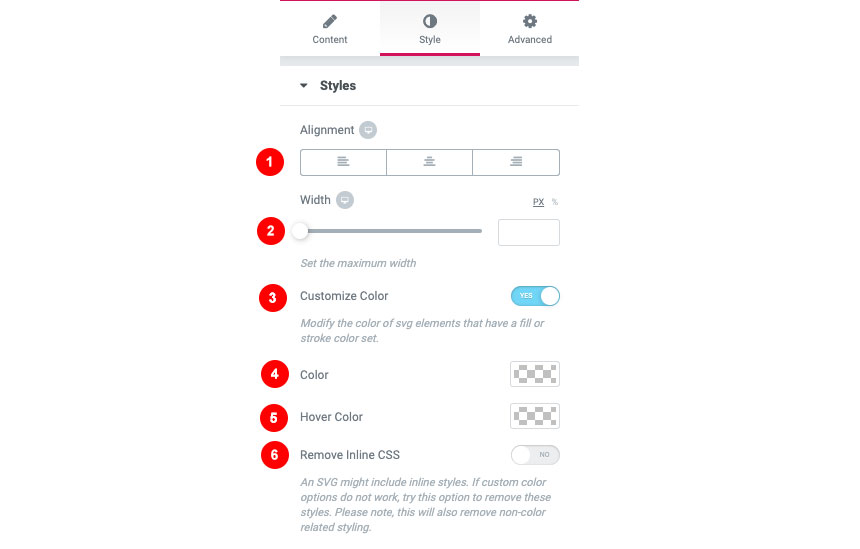 Under the Style tab you can control the appearance of your label like you would do in any Elementor’s element.