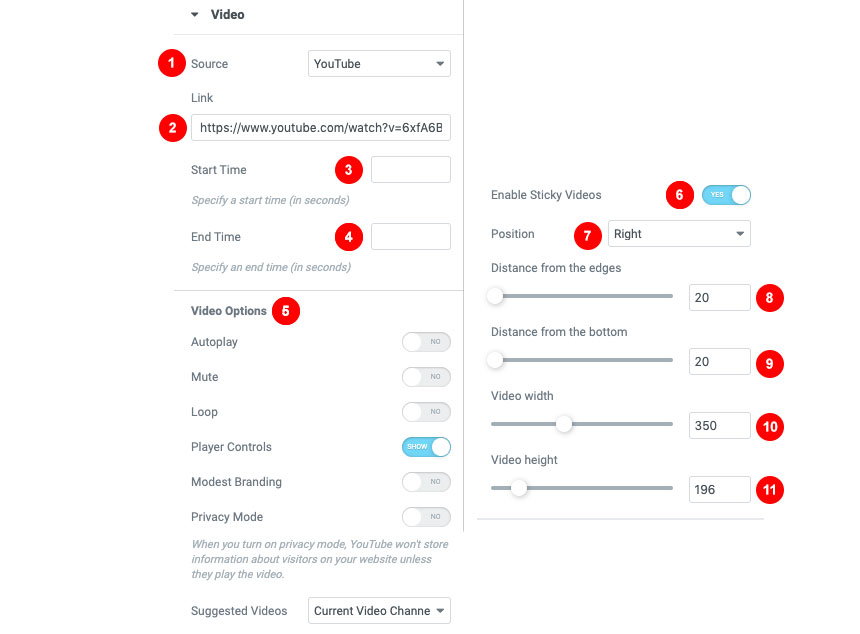 Select a video from Youtube or Vimeo and keep it sticky when your visitor scrolls down.