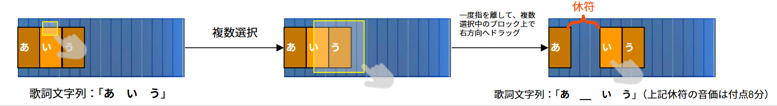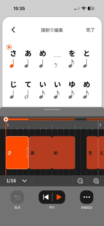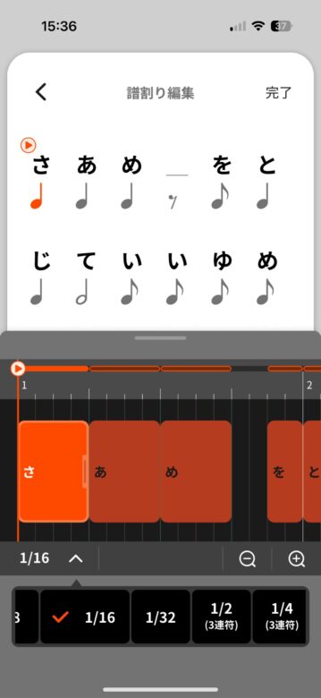 細かな操作方法については割愛しますが、ボックスを移動させることによって、自動的に休符も入るなど、非常に使いやすくできている印象です。