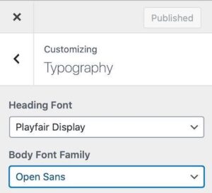 Users can choose any font of their choice from Six Google fonts. for the heading and body text. The font options available are Lato, Lora, Libre Frenklin,Open Sans,Playfair Display and Pacifico.