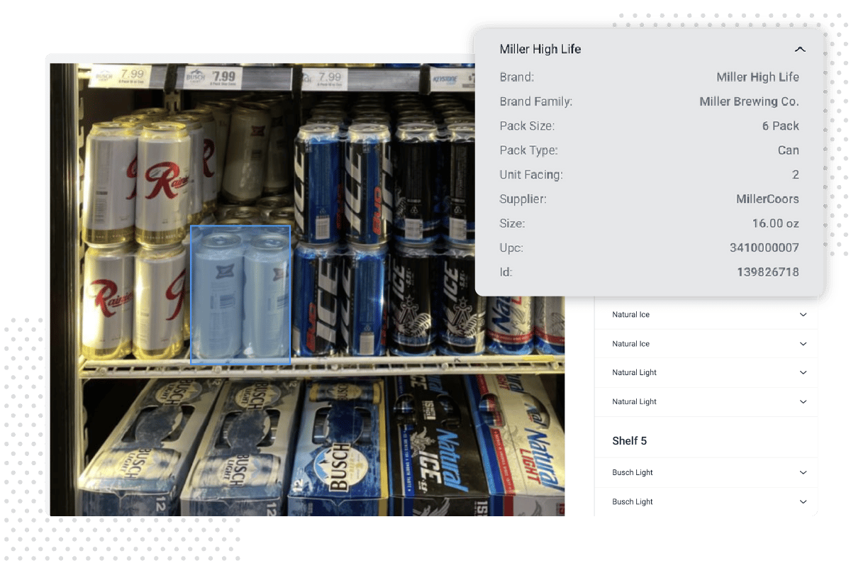 Did you catch the clear plastic ring on this six-pack? Our Image Recognition did. Our machine-learning AI detects products and packaging types that even reps might miss, giving accurate, objective data—every time.