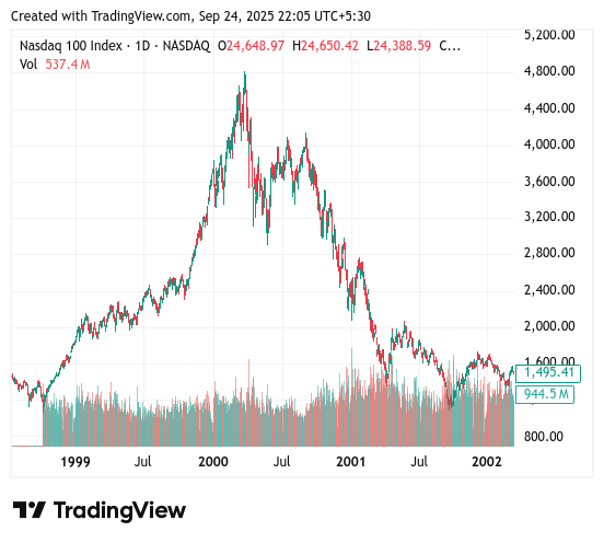 だがこのインターネットというものが世界を変えるという話は株式市場ではまたたく間に広がり、2000年までに大相場を演じて、そこから崩壊していったのである。