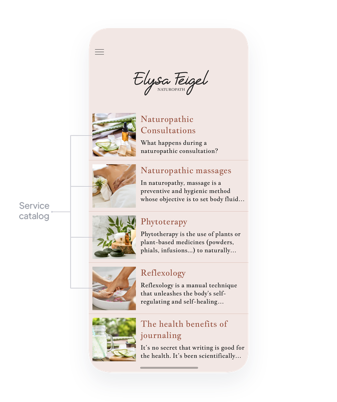 Display your availability so that your customers can identify at a glance the slots that might suit them. It' a decisive argument among your customers who aspire to maximum convenience and minimum hassle. Your availabilities are synchronized in real time, which ensures an infallible booking system as efficient for you as for your clients: the appointment booking section of your app is linked to the Google Calendar of your choice. This way, if a slot is blocked on your Google calendar, it will be automatically and instantly blocked in your app, and vice versa.
