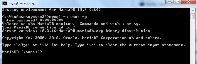 Step 3) A MariaDB parancssor elindul. Itt az ideje bejelentkezni. Jelentkezzen be root felhasználóként és a telepítés során megadott jelszóval MariaDB. Írja be a következő parancsot a parancssorba: