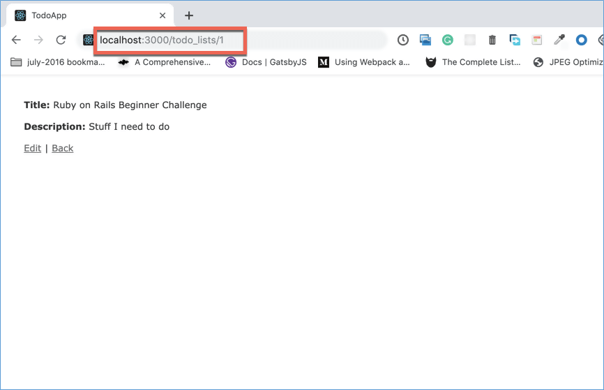 Это страница показа списка дел, и она управляется методом/действием show TodoListsController. Если ты вернешься в http://localhost:3000/todo_lists/, вы должны увидеть рисунок ниже с добавленным новым списком задач: