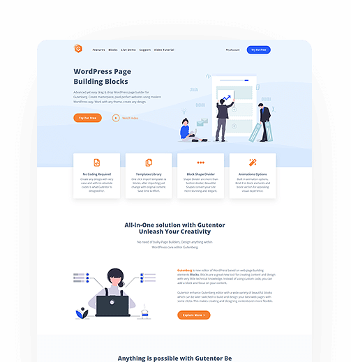 Create any design with very ease and with no absolute codes is what Gutentor is designed for.