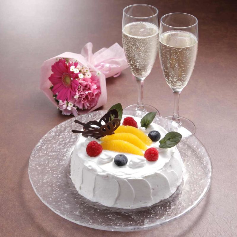そしてこちらのコースはなんと!!高級シャンパン「モエ・エ・シャンドン」・「ホールケーキ」・「ミニブーケ」付き。お花までついているなんて嬉しいですよね。美味しい食事とサプライズプレゼントで素敵な誕生日になります。