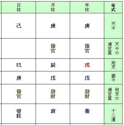 しかしながら、この命式は2個の劫財が3個もあって太過している傷官を生じるためよくありません。