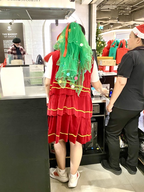 そして、昨日MAYA内のリンピンスーパーに行くと、ガチなクリスマスコスプレの店員さんがいましたΣ(・ω・ノ)ノ!