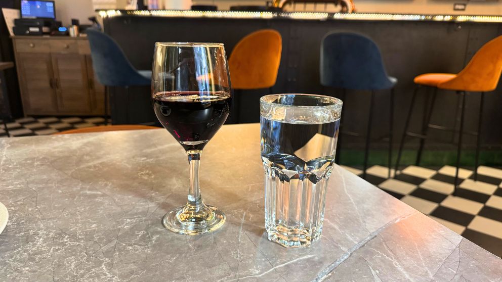 私が頼んだマンガリッツァのホホ肉が7,200フォリント、ワインが150mlで2,200フォリント、コップに入れてもらったスパークリングウォーターが550フォリント。