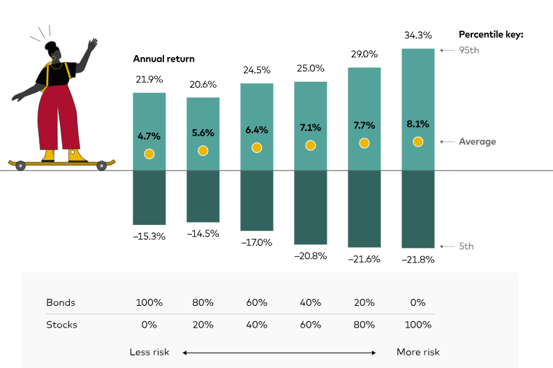 株式と債券のバランス別リターン