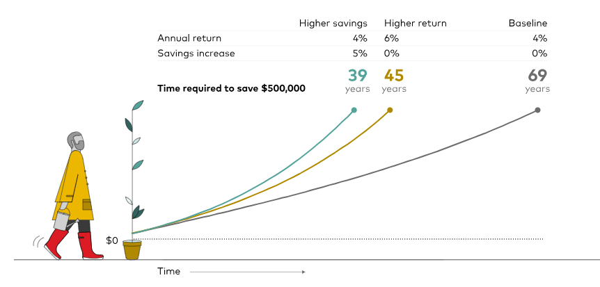 - 貯蓄額と投資リターンの関係