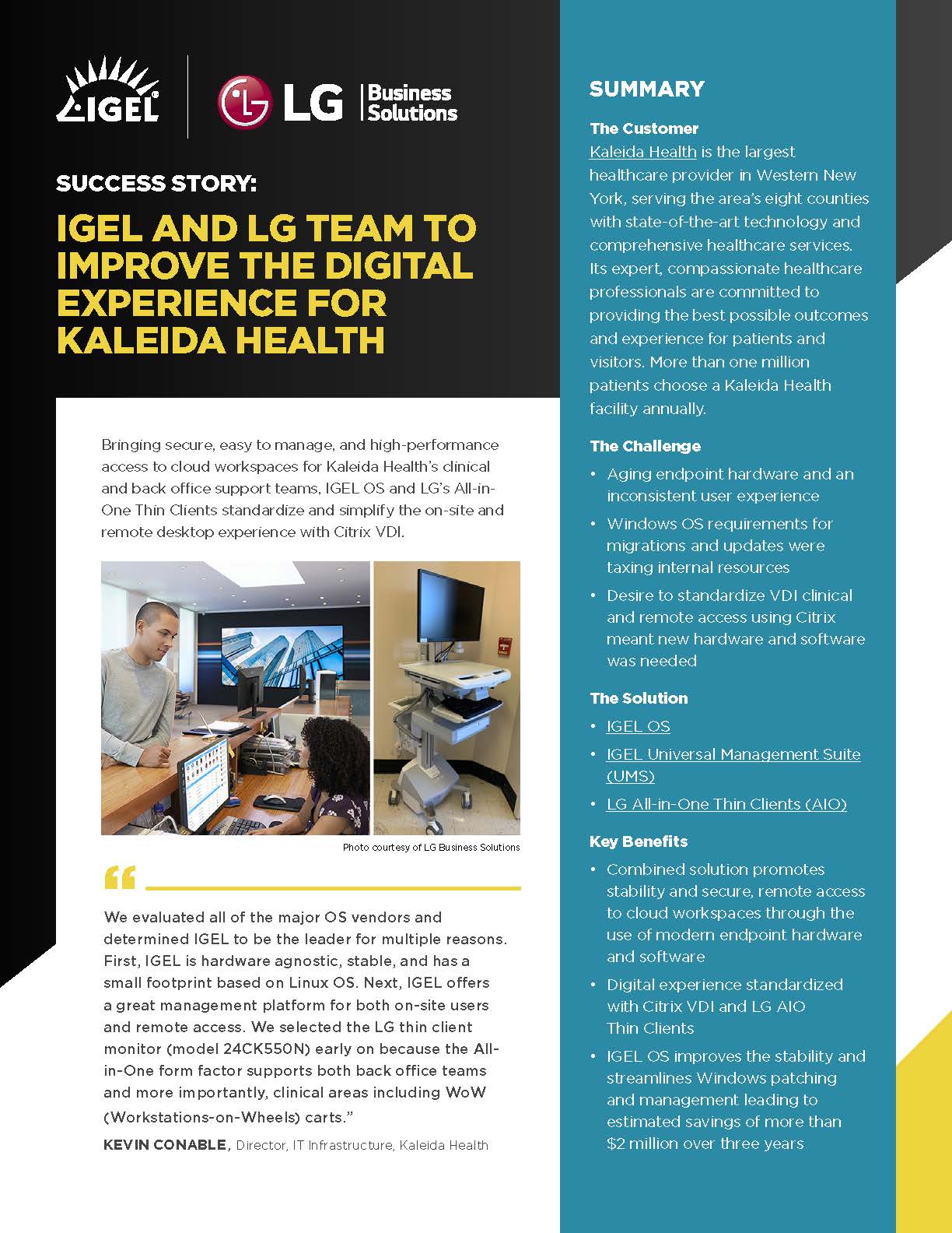 - Greater choice of devices for employees utilising proven LG notebooks and thin clients pre-installed with IGEL OS