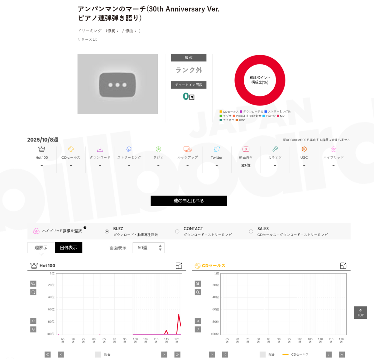 ドリーミング「アンパンマンたいそう」は10月に入り、CHART insightにて赤で表示される動画再生が2週続けて26位にランクイン。それまでの最高位は2024年1月17日公開分および2025年8月20日放送分における29位であり、今月更新した形です。
