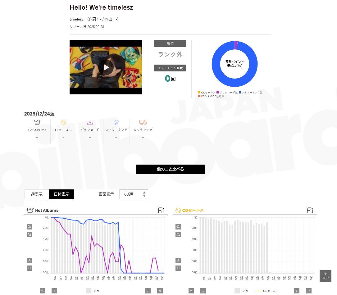 Snow Manは『THE BEST 2020 - 2025』がデジタル後発ながらチャートで安定、またtimeleszはSexy Zone時代を含む代表曲を集めたコンピレーションアルバム『Hello! We're timelesz』がデジタルのみでのリリースながらヒットし、共に年間アルバムチャートでトップ10入りしています。ライト層、また後者はオーディション視聴者の支持も得たことが大きく、この結果を積極的なデジタル解禁につなげてほしいと願います。