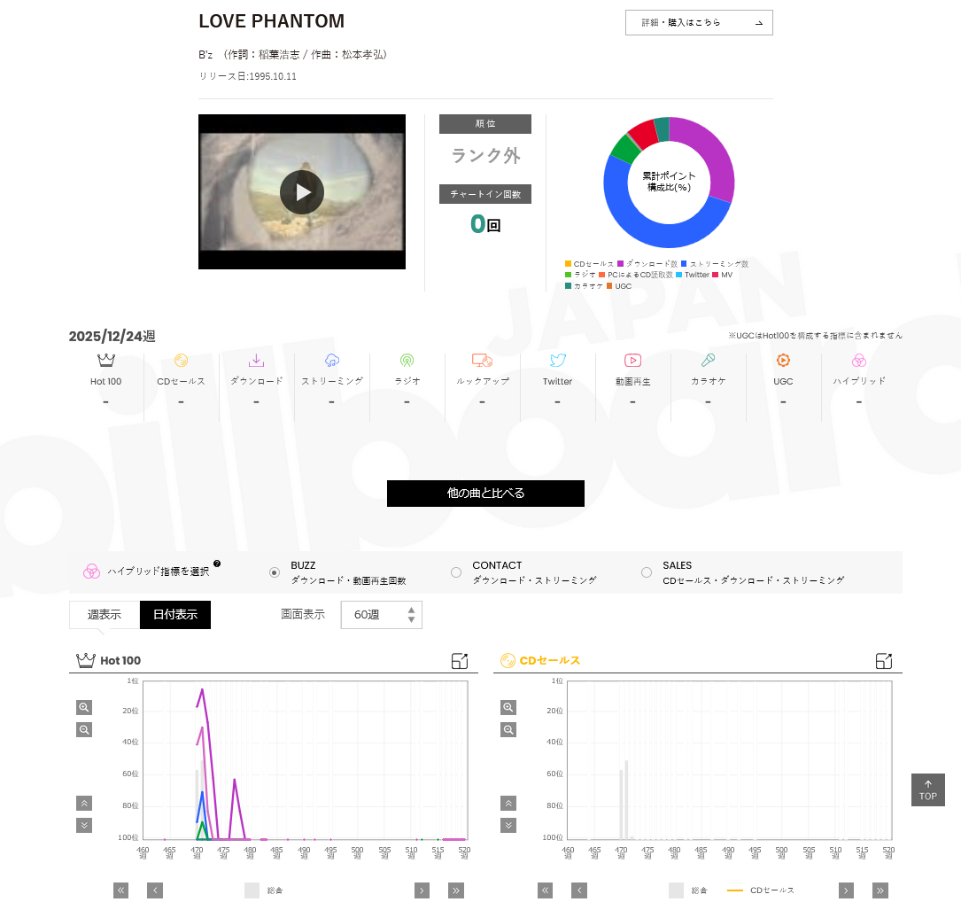 昨年の紅白にB'zが出場した際、サプライズで披露した「ultra soul」そして「LOVE PHANTOM」は年明けに発表されたビルボードジャパンソングチャートでトップ100入りを果たしています。これらの曲はサブスク解禁されているのですが、ミュージックビデオが短尺版だったことで思うほどの上昇に至れなかったものと捉えています。