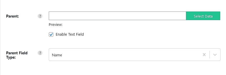 Select the page parent from the dropdown field, or enable the text field to use the data selector tool to choose element from import file, depending on your chosen file element you can change the reference type via the sub field Parent Field Type of either (ID, Slug, Name or Reference Column).