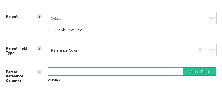 Selecting the reference column allows you to identify the parent record based on the Parent field value matching the Value set in the reference column.
