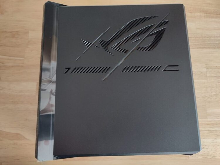 正面には偏光仕上げのROGロゴが配置され、電源投入時にはAURA RGBライティングが美しく輝きます。