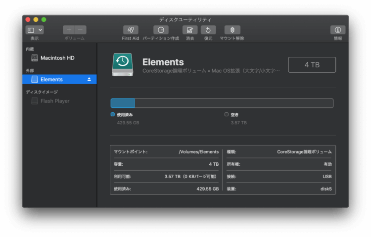 そしてフォーマットするモデルは、4TBの「WD Elements Portable WDBU6Y0040BBK-WESN」をチョイスしています。