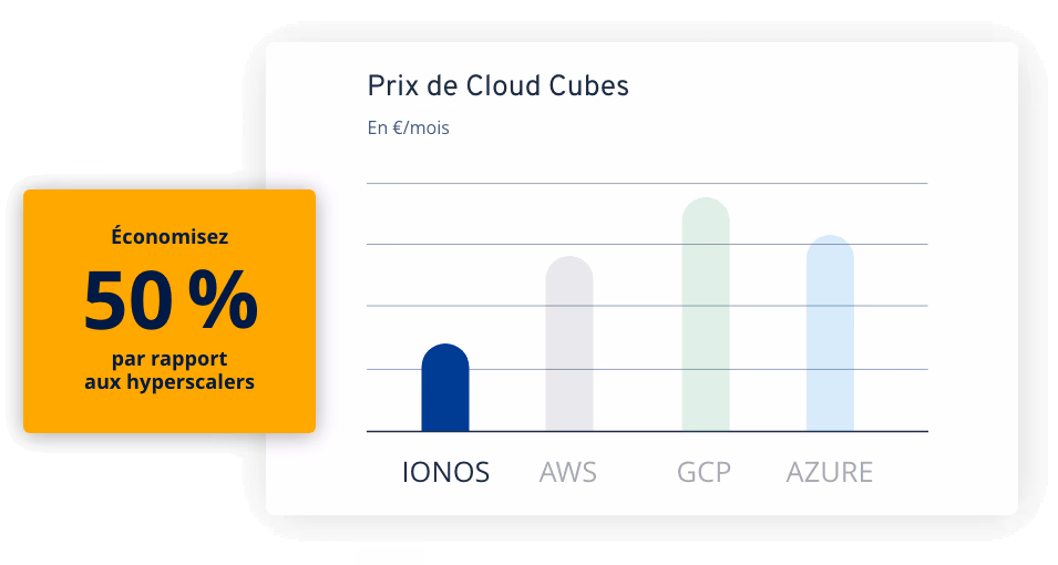 Un serveur Cloud est un serveur virtuel qui vous fournit une infrastructure informatique complète basée sur le Web, incluant la puissance de calcul, l'espace de stockage et la technologie réseau. L'avantage : vous n'avez pas besoin d'acheter un serveur physique (tel qu'un serveur Bare Metal) qu'il faut configurer, mettre à jour et entretenir à un coût élevé. Si vous louez un serveur Cloud avec IONOS, vous disposez de toutes les ressources nécessaires pour réaliser vos projets Web privés ou professionnels. Vous pouvez facilement traiter, échanger, sécuriser et gérer des données sur le Web, indépendamment de leur emplacement. Vous pouvez également exécuter diverses applications prenant en charge les données sur Internet et les mettre à la disposition d'autres utilisateurs. Les ressources serveur que vous n'utilisez pas actuellement sont disponibles pour les autres utilisateurs. Grâce aux structures partagées, nos serveurs Cloud pas chers sont donc particulièrement rentables.