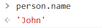When you access a property of an object, if the object has that property, it’ll return the property value. The following example accesses the name property of the person object: