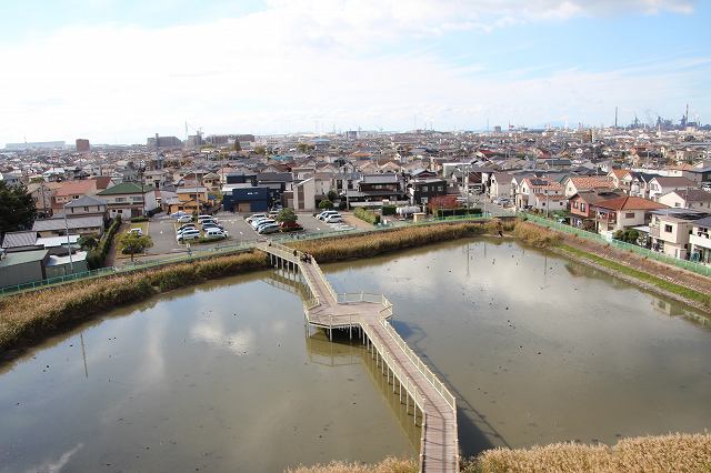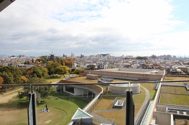 まずは遺跡のそばにある兵庫県立考古博物館に立ち寄ることにする。博物館は溜め池である狐狸ヶ池の北にある。池の南の駐車場に車を止めると橋を渡って博物館へ。博物館には展望台もついており、上から公園全体を眺めることも可能。なお博物館では現在は特別展として甲冑展が行われているのでそれを見学。