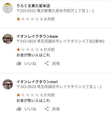 Googleプレイスのレビューと評価点最悪