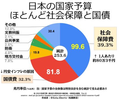 何度も言ってますが、日本の財政の大半は高齢者の社会保障で消えています。
