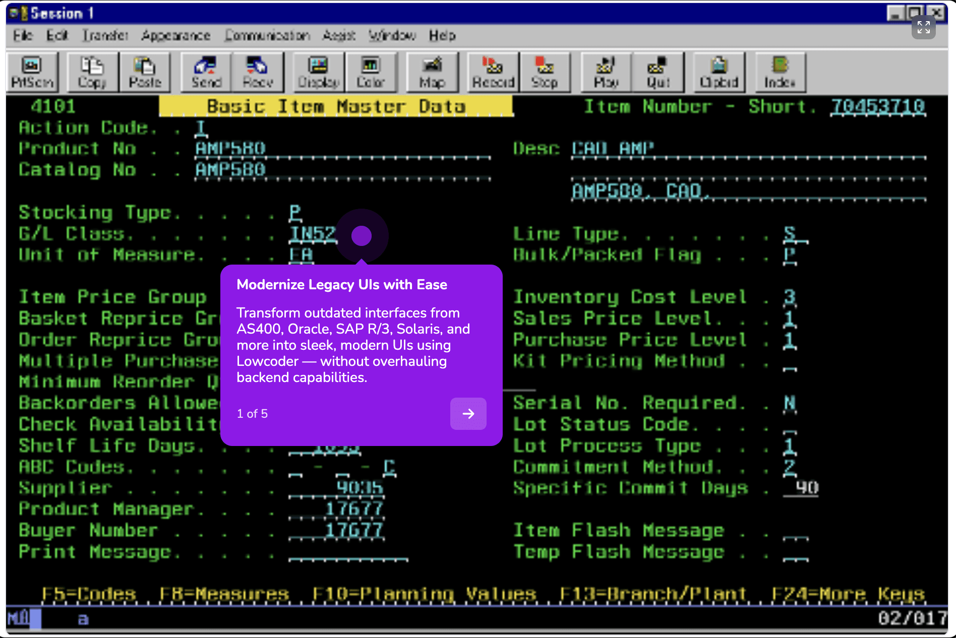 Seamlessly modernize the UI of legacy IT systems like AS400, DB2, Solaris, and other industry mainframes, bringing them into the digital age with ease.
