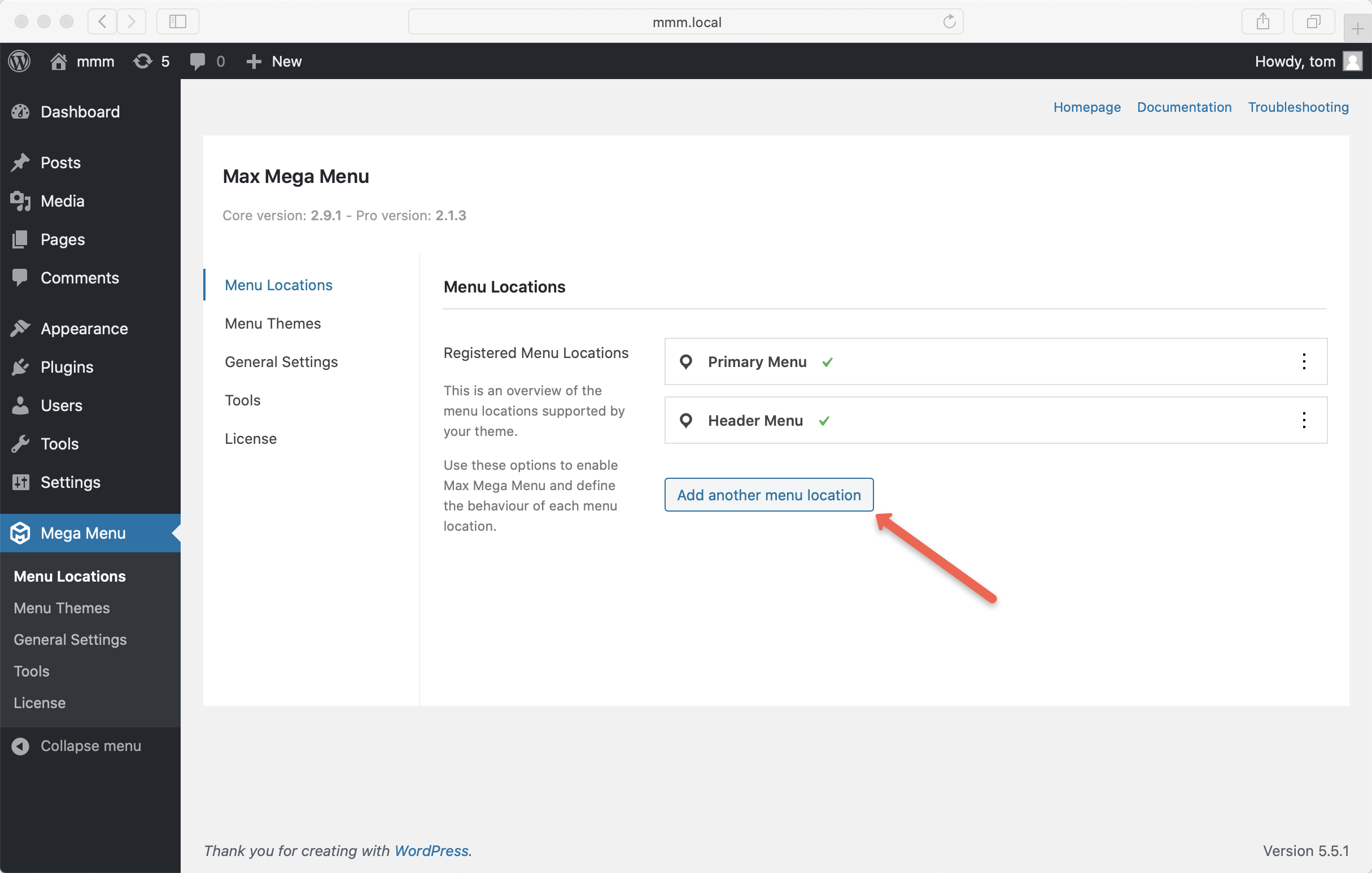 On the next page, provide a name for the new location and click ‘Add menu location’.