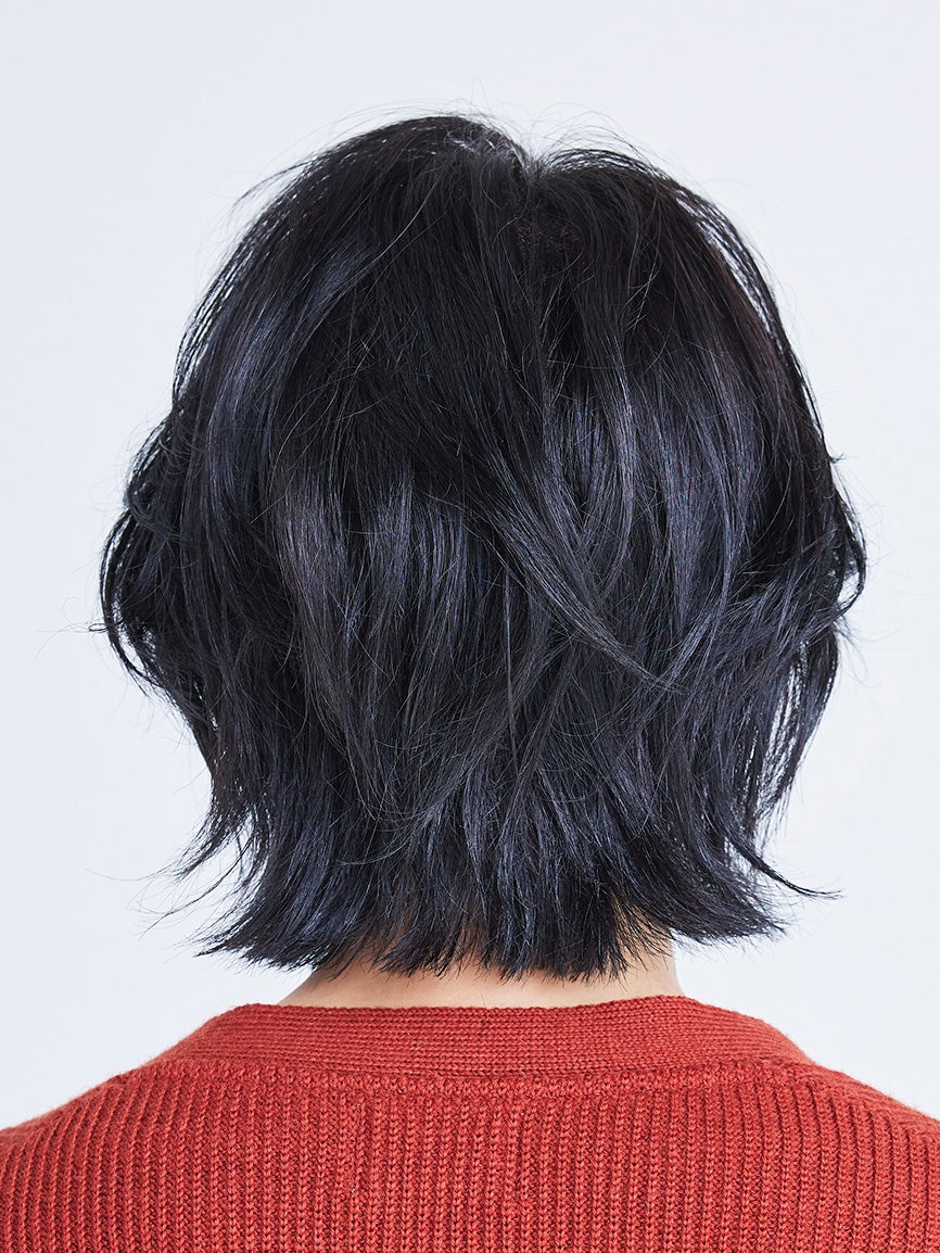 カットベースはシンプルなワンレングスのボブスタイル。そこへ顔まわりとトップの表面のみに薄くレイヤーを ON。全体的に空気感を出しやすくするため、毛量調整やスライドカットなどで毛束の間に“隙間”を演出しているのが、スタイリングで動きを出しやすくするポイント。