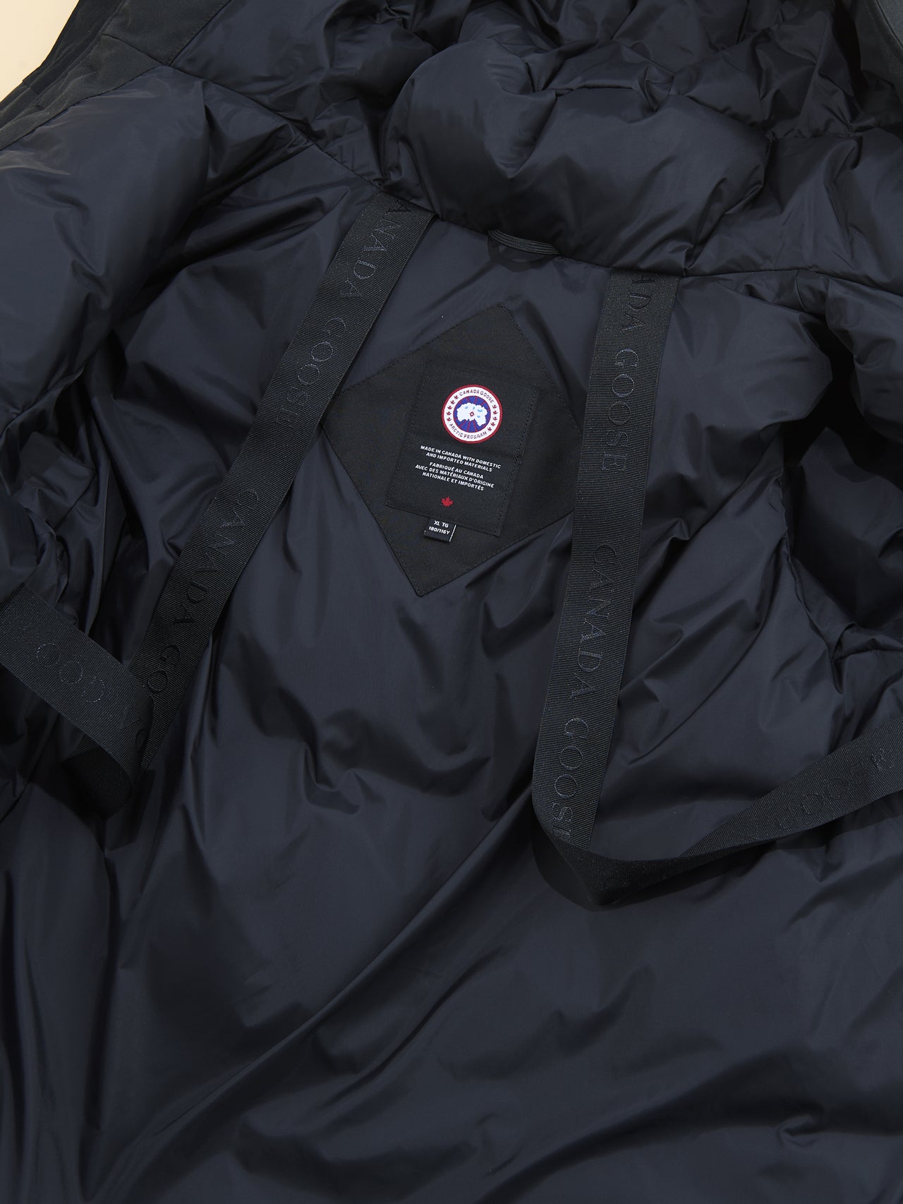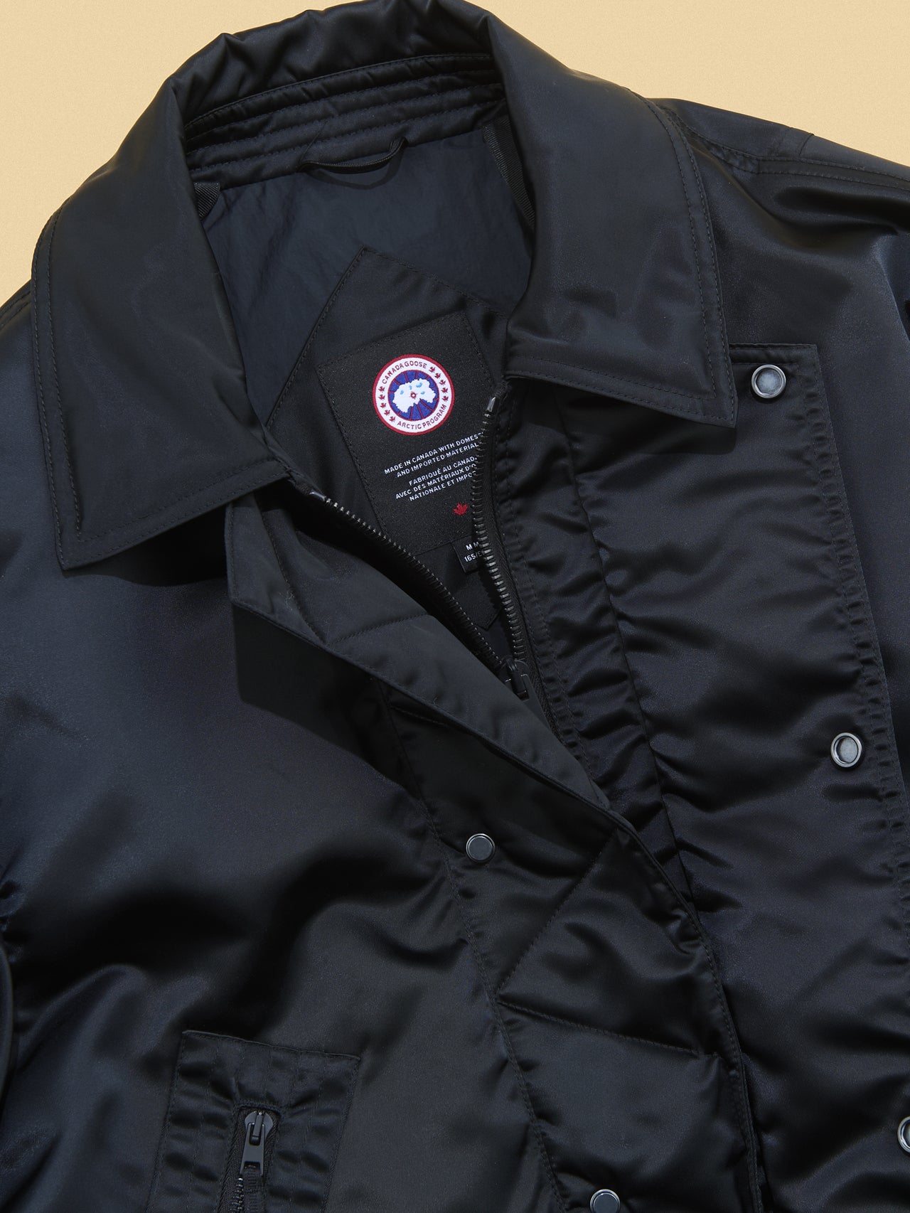 カナダグースのベストセラー「ロッジ ジャケット」のアイコニックなシルエットと予測不可能な天候に耐える優れた機能からインスピレーションを得た2025年の最新作。フロントはスナップボタン開閉式で、ジッパーつきの外ポケット、内側にはドロップインポケットとジッパーつきのセキュリティポケットがついており、日々の外出に最適なデザインになっているのがポイント。
